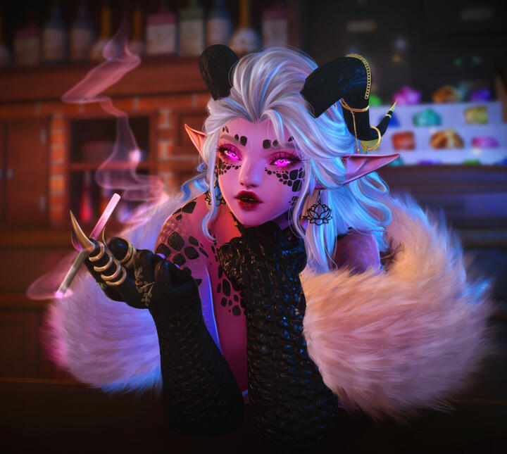 Due to her running her own underground lounge, those who know of the place are much more likely to recognise her and even know her from there. If not, you may also know her from her apothecary/potion buisness she runs as a cover for the lounge. In need of any tonics or uncouth drugs? Maybe she can provide.